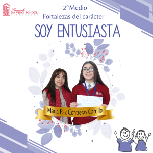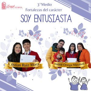 El día de ayer se llevó a cabo la ceremonia de Premiación de la Fortaleza del Carácter “Soy Entusiasta”, instancia en la que reconocimos a nuestros estudiantes que se destacaron por vivir cada día con alegría, energía y entusiasmo.